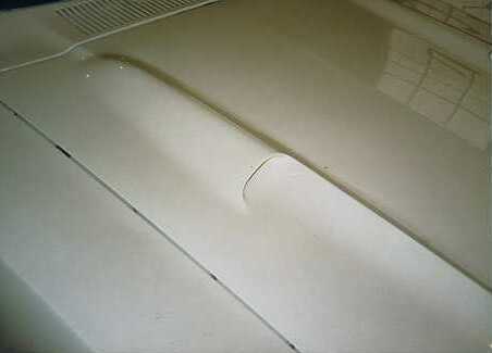 (Photo 1) I found a discarded Grabber hood in the junkyard, and asked Joe Flurer to create some sheet metal inserts for a Grabber hood – to replicate the inset pot metal inserts. Then, the rear pan