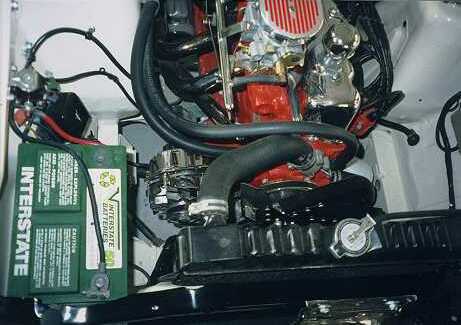 chrome plated was, and the engine was treated to three-coats of non-catalyzed '56 Ford red mixed in DuPont Centari, and then carefully installed in a body-white painted engine compartment. A genuine '66 Shelby Mustang 4-speed was