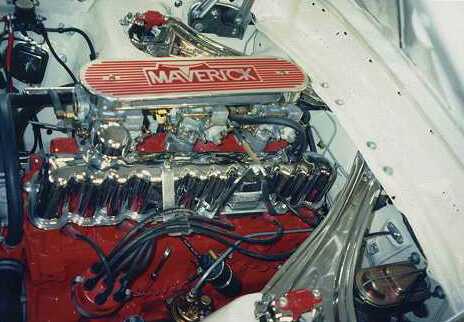 started to take the car apart, I took the engine to master mechanic Mike Smith along with a trunk full of parts from Clifford Engineering. He was given the mission of installing tri-power and making it work! With the help of master machinist Cedric Ozminski ("Ozzie"), magic was worked! First, the short block was bored .030 with 9-to-1 Jahns pistons installed. The rods were shot-peened, polished, mounted to the pistons and crank and then the entire assembly was balanced. Meanwhile, the head was ported and polished and extrude honed, and the front and rear of the integral intake portion of the head were opened up to permit mounting the carbs, the exhaust ports were hogged out to match the headers, a port divider between the third and fourth cylinders was heli-arced in, custom aluminum car mounting pads were machined by Ozzie, a custom fuel log was constructed, a fuel pump block off plate was machined and mounted (the car has an electric fuel pump), Ozzie made a custom air cleaner along with a Maverick-monogramed throttle bracket and more additional details that can be listed here.